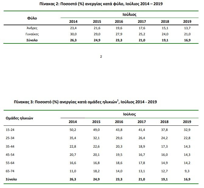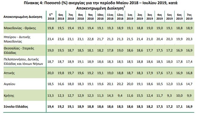 Ανακοινώθηκε σήμερα από την ΕΛΣΤΑΤ το ποσοστό ανεργίας για τον Ιούλιο του 2019.